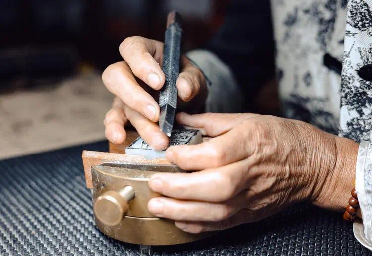 谈起与篆刻的结缘,任桂荣说:“我的爷爷和父亲都是资深的篆刻艺术匠人,我年幼时常常坐在工作台一旁,静静地看着他们一笔一划地雕刻,当时我还不能完全理解篆刻的深奥之处,但一枚艺术的种子已在心中悄然发芽。”