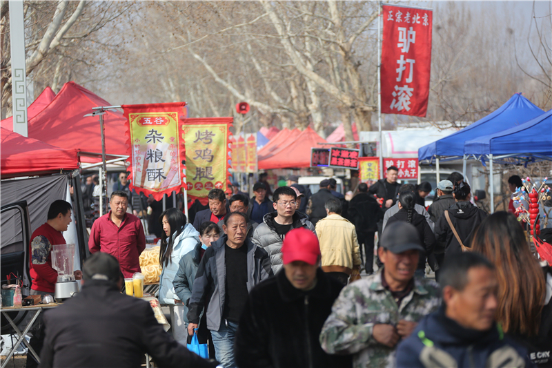2月28日,在山东邹城峄山庙会上,当地百姓赶庙会。