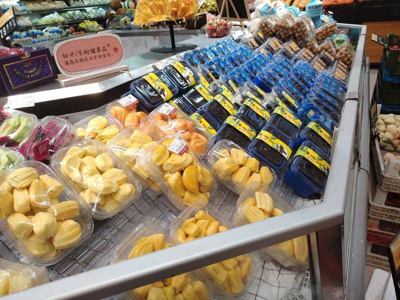 记者在莱山区振华超市看到,红红的草莓、金黄的芒果、清甜的菠萝被摆放在显眼位置,云南蓝莓、四川枇杷、海南木瓜、福建杨桃等地域特色水果也通过冷链物流快速抵达市民餐桌。
