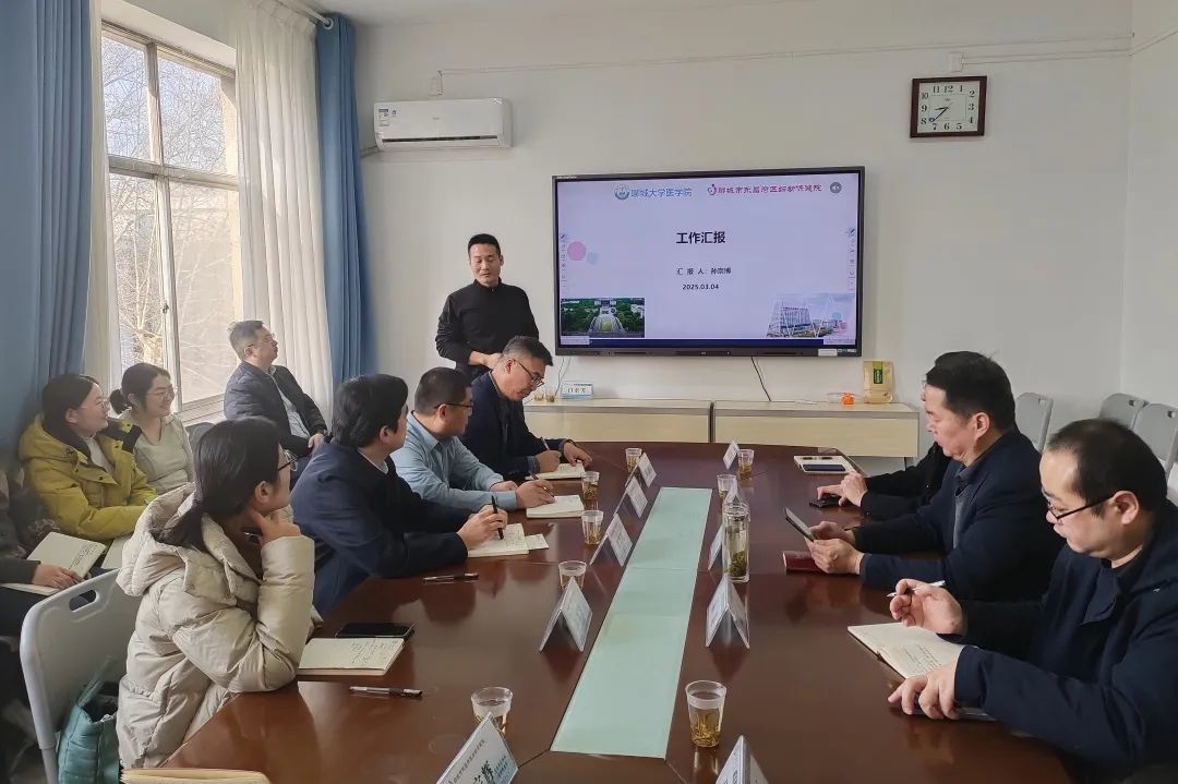 会上,聊城大学院长助理王丽介绍了临床研究的意义,高校与医院合作开展医学研究的必要性及可行性,根据医院特色介绍了可以开展的相关科研工作。院长助理杨茜茜从教学和科研两方面汇报相关工作。影像教研室主任孙宗博围绕智能影像工程专业建设以及多组学技术在孤独症发病机制的研究,详细介绍了在医学院和东昌妇幼医学影像中心开展的教学、科研、临床工作。