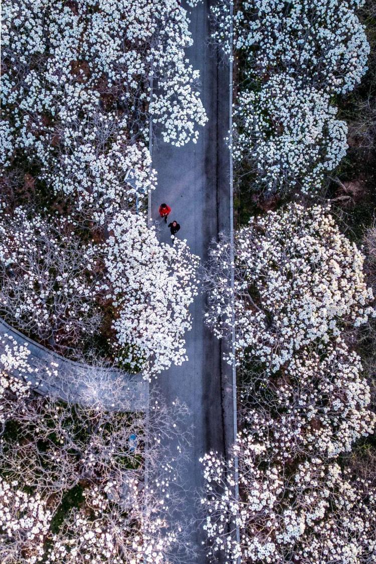 站在玉兰之下,抬头仰望,心中涌起的是对春日纯净美好的向往。南山公园和烟台植物园附近的玉兰花更是一绝,颇有一种“净若清荷尘不染,色如白云美若仙”的境界。
