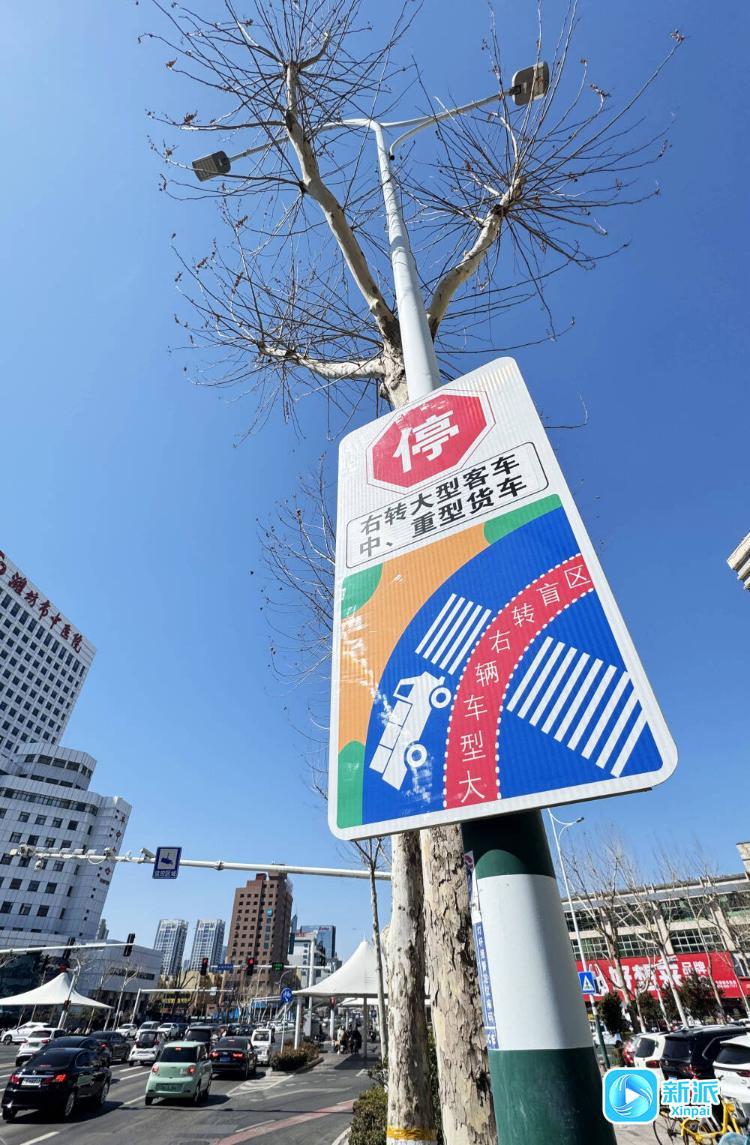 3月18日,记者在潍坊城区东风东街与潍州路交叉口附近采访时看到,大型车辆右转盲区警示牌亮相街头,吸引了人们的目光,旨在预防和减少由于大型客车以及中、重型货车“内轮差”盲区而引发的右转弯交通事故,提醒过往车辆、非机动车和行人在路口及时避让,离开警示区域。