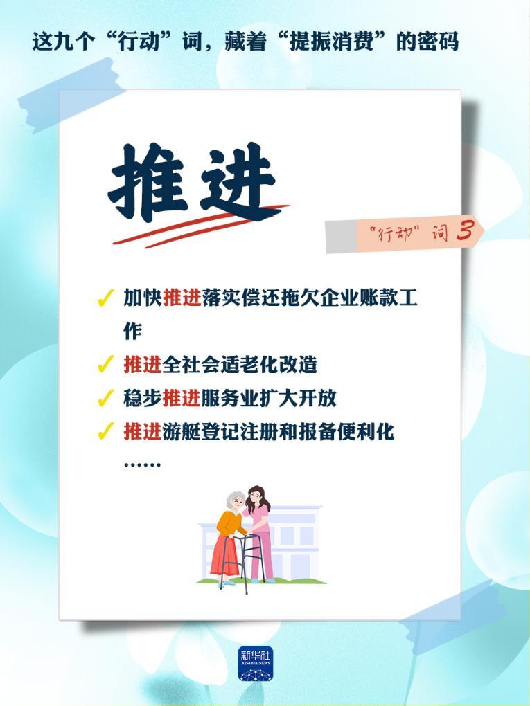 我们梳理出“方案”中使用频率较高的九个“行动”词,从这些不同维度的“行动”词中,解读“专项行动”的丰富内涵和政策“含金量”,看看哪些是立竿见影、吹糠见米的惠民行动?哪些是需要加力扩围、加快补齐的消费短板?还有哪些是需要有序推进、以点带面的消费“新”点?