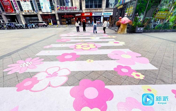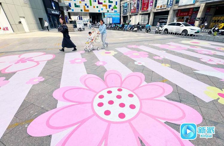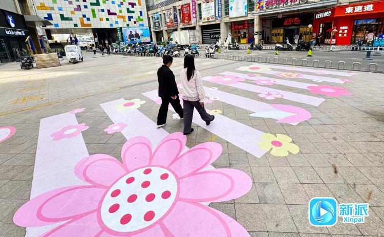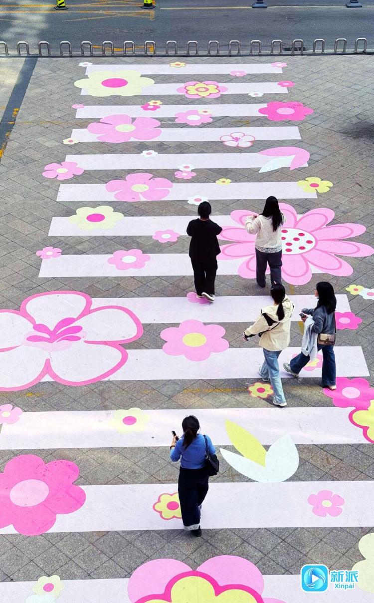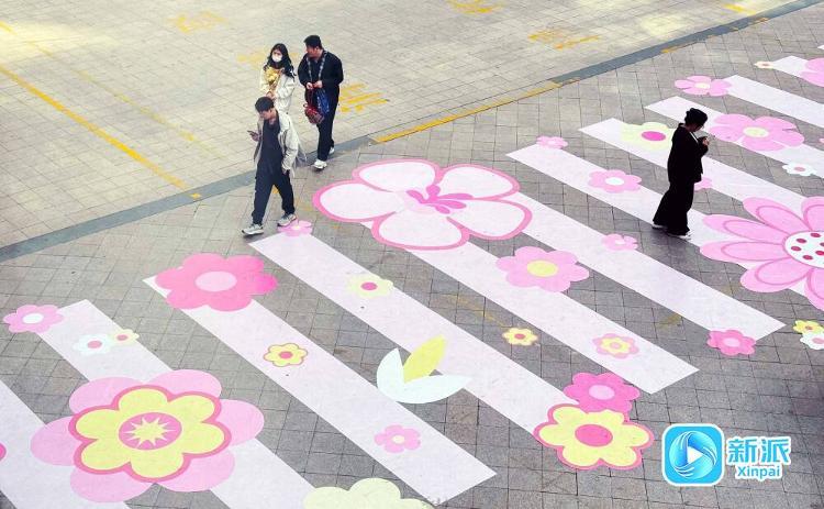 4月7日,记者在奎文区南下河街采访时看到,粉色系樱花“斑马线”吸引了过往市民的目光。据了解,这条樱花“斑马线”长23米、宽5米,设计采用了春天樱花的颜色,充满时尚活力,让人眼前一亮,把这个春天打造得亮丽多彩。