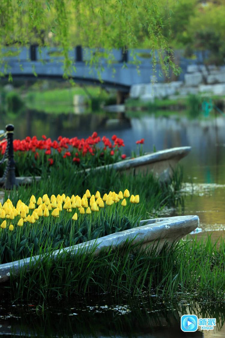 4月11日,在潍坊植物园里,竞相开放的花儿吸引市民前来观赏。有五颜六色的郁金香,还有千朵万朵压枝头的海棠,更有花中之王牡丹。满目堆翠、姹紫嫣红、花气袭人,潍坊植物园,开出了最美人间四月天 。