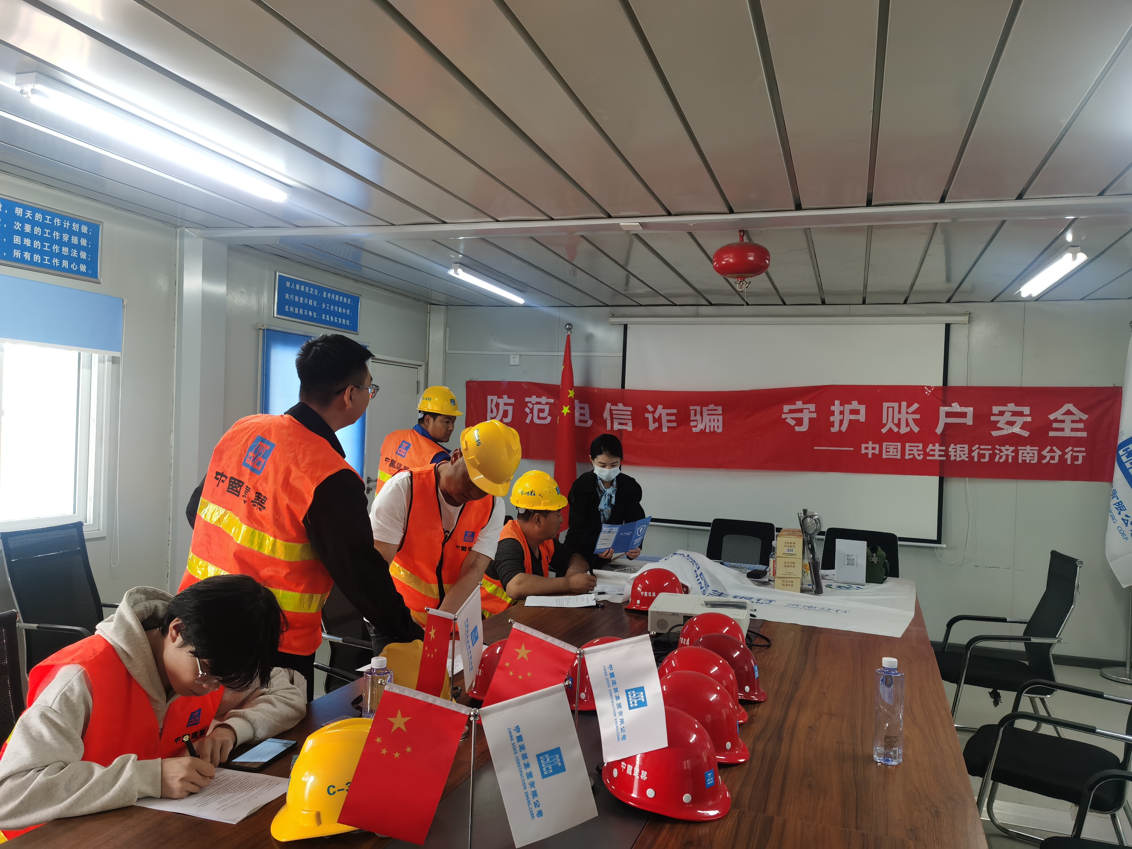 为切实提升建筑工人群体防范电信网络诈骗的意识和能力,守护劳动者财产安全,民生银行济南槐荫支行于4月11日走进某建筑工地,开展“反诈宣传进工地,筑牢安全防护网”专项活动,通过案例讲解、互动体验、情景模拟等形式,为工友送上“量身定制”的金融安全知识。