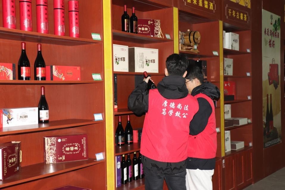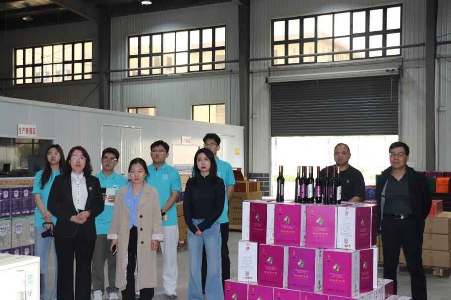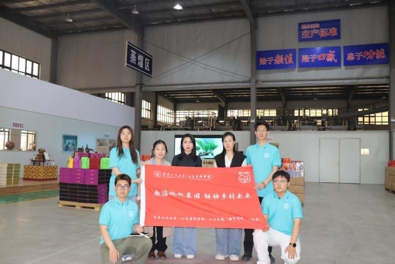 在山东椹树下生物科技有限公司,实践团见证了科技如何让千年古桑焕发新生。企业依托黄河故道 7900 亩古桑林资源,首创低温发酵技术,开发出“椹果宝椹酒”等专利产品。创始人宋文娟讲解道:“企业联合西北农林科技大学攻克桑椹酒酸涩难题,年产果酒达 3000 吨,并建立 296 亩示范基地带动 3000 亩合作社种植,以‘保护价’收购模式惠及千户果农。”生产车间内,全自动分拣线精准筛选白椹果,发酵罐群恒温控制系统实时监测数据,展现传统农业与现代工业的深度融合。