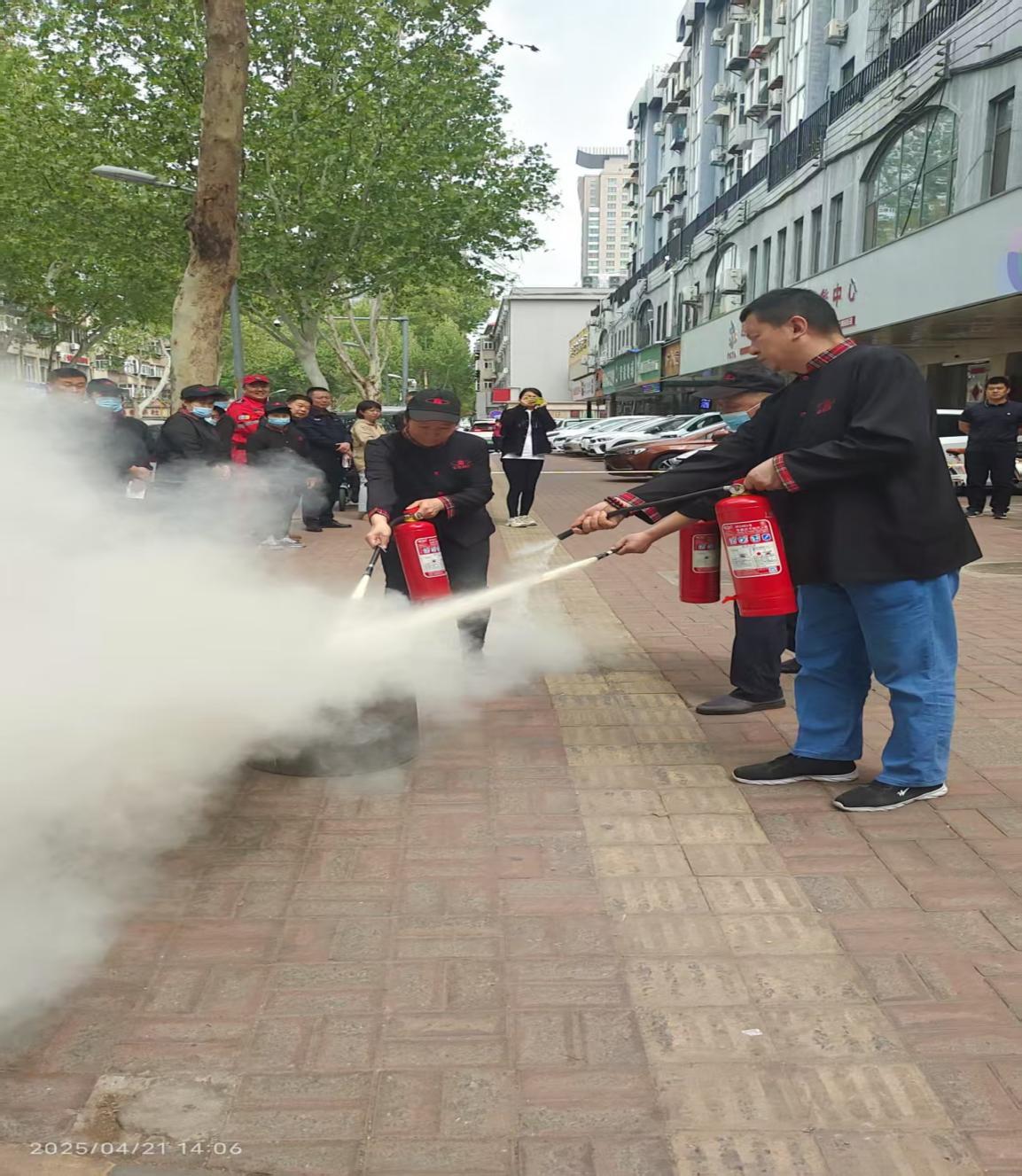 如果被困火场,要冷静自救。穿过浓烟时,要尽量使身体贴近地面,用湿毛巾捂住口鼻防窒息。可用湿棉被、衣物裹在身上,将身体浸在水中。”社区应急救援站的工作人员结合多年的经验,就遇到火灾的应对措施、扑救火灾的基本方法、消防器材使用等方面的知识进行了详细讲解。在扑救初起火灾环节,员工使用消防器材成功将火源扑灭。