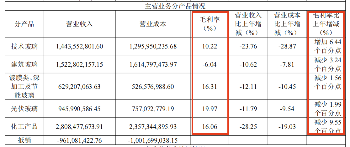 金晶科技的主营业务主要聚焦在建筑以及节能玻璃、纯碱、光伏玻璃三大业务板块,不过从目前形势来看,三大业务板块产品营业收入存在全面下滑的趋势,且存在产品价格下行、毛利率下滑的问题。
