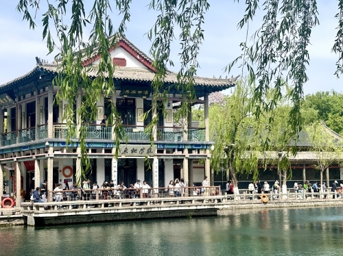 4月26日,济南市区天气晴好,最高气温达29℃,五龙潭公园内春意盎然,吸引了众多市民、游客前来亲泉游玩。人们趁着周末好天气赏花、戏水、亲泉,享受惬意春光,公园内洋溢着轻松欢乐的氛围,全市各景区也在精心筹备,提前为“五一”假期预热。(作者:济南日报·爱济南 记者赵晓明)