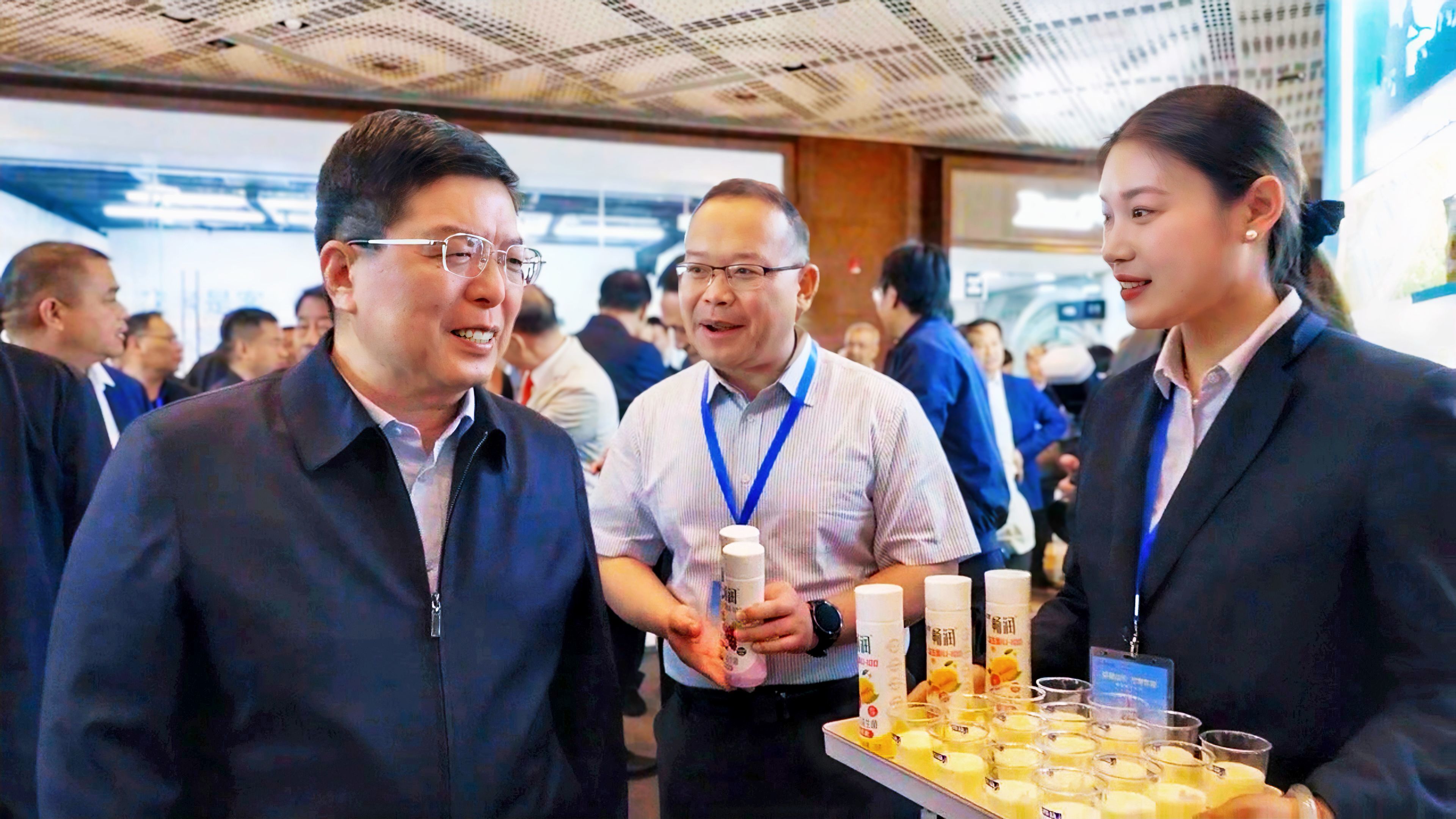 在25日的开幕式巡展环节,山东省人民政府副省长陈平,上海市农业农村委员会党组书记、主任冯志勇,山东省农业农村厅党组书记、厅长张红旗等领导莅临得益乳业展位,现场品鉴了荣获第九届山东省省长质量奖的得益牛奶。副省长陈平在听取企业全产业链布局、畅润IU-100高端益生菌酸奶的优势汇报后,对畅润酸牛奶的高品质、好口感给予充分肯定:得益牛奶,产品很好,我推荐!