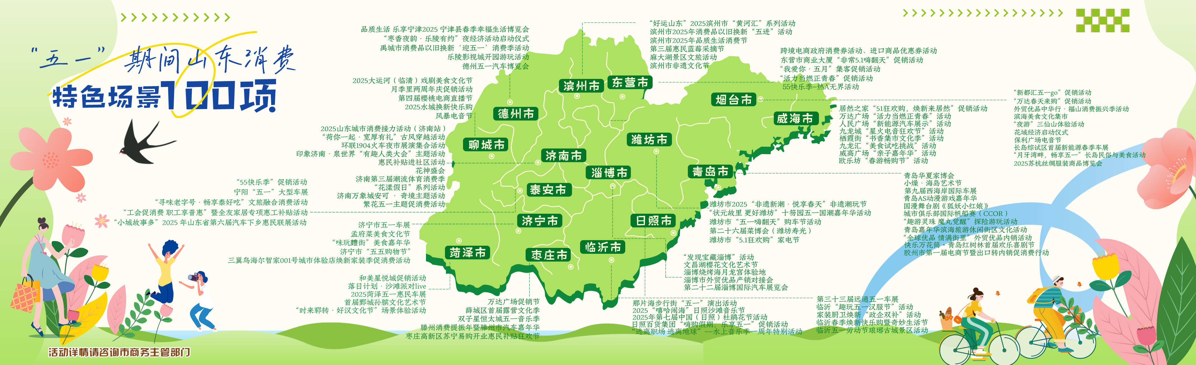 齐鲁网·闪电新闻4月29日讯 宝子们!山东“五一”撒欢消费指南新鲜出炉啦!暮春的齐鲁大地已经按捺不住“搞事情”的冲动,山东省商务厅联合16市商务主管部门策划100个花式消费场景,直接把假期氛围感拉满!从济南的无人机秀到青岛的海边电音节,从淄博的烧烤狂欢到临沂的汉服穿越,全省16市集体“整活”,吃喝玩乐购全给你安排得明明白白,这个“五一”来山东,让你玩到不想回家!