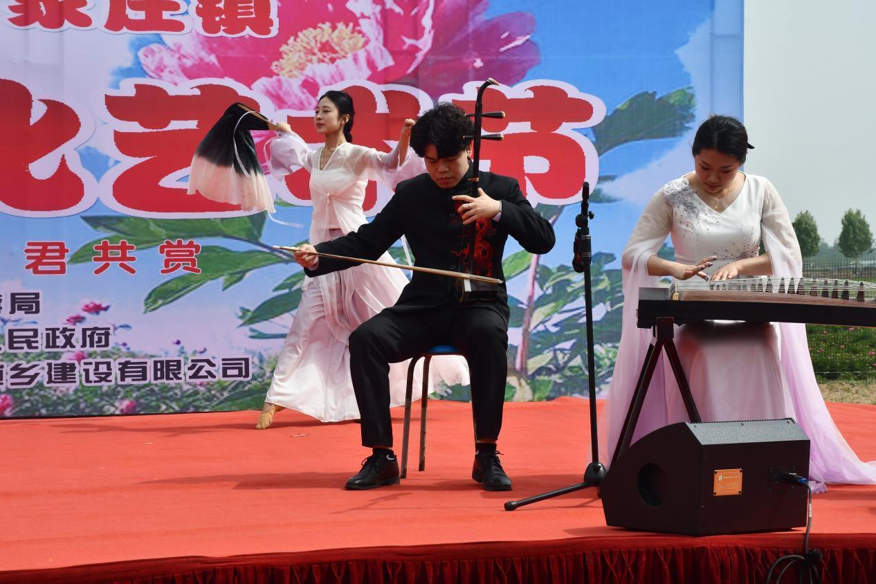 开幕式现场精心策划了系列文艺展演活动。歌舞《幸福秧歌扭起来》以喜庆热闹的旋律拉开帷幕,经典歌曲《左手指月》展现了传统古筝、二胡和舞蹈结合的艺术精髓,非遗民俗表演则彰显地域文化特色。通过现代舞台美学与传统艺术表达的创新融合,为观众呈现了一场高水准的文化盛宴。园区内百亩芍药竞相绽放,游客既可漫步花海体验沉浸式赏花乐趣,亦可参与汉服游园、书画创作等文化互动项目,现场洋溢着浓厚的艺术氛围。