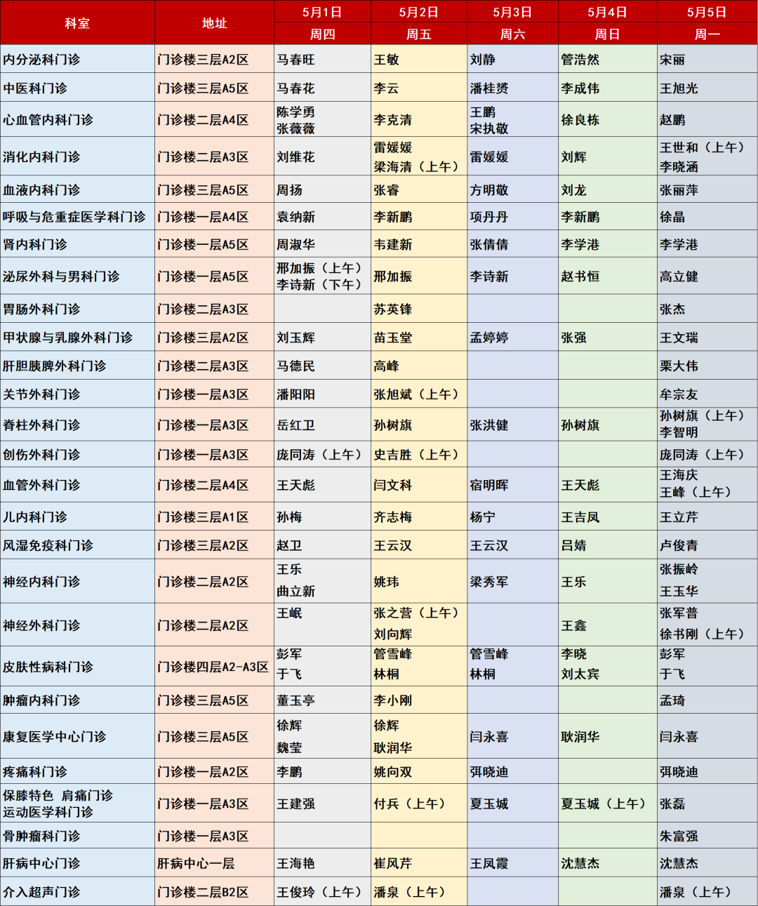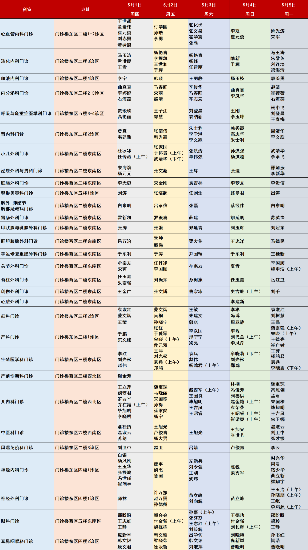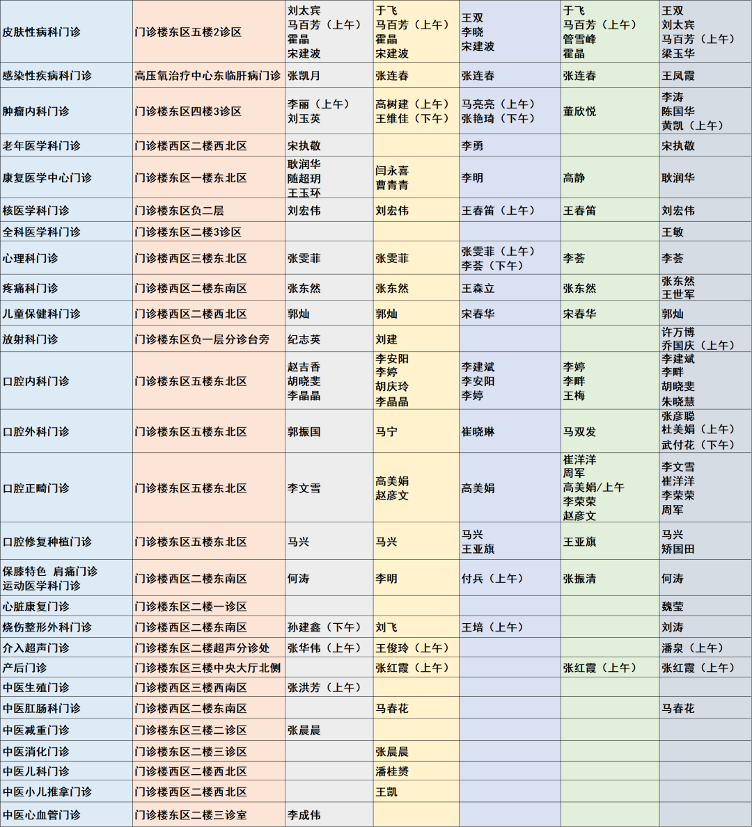 说明:如出诊医生有变,以当天实际出诊专家为准。