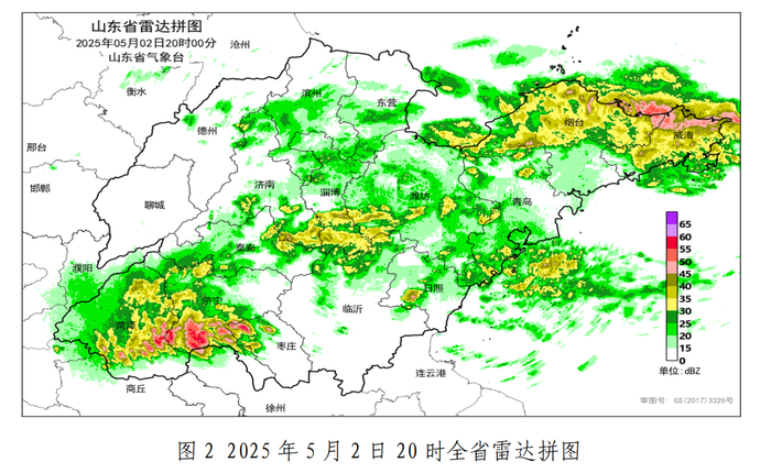 目前,降水回波主要位于菏泽、济宁、泰安、济南、淄博、潍坊、日照、青岛、烟台和威海。