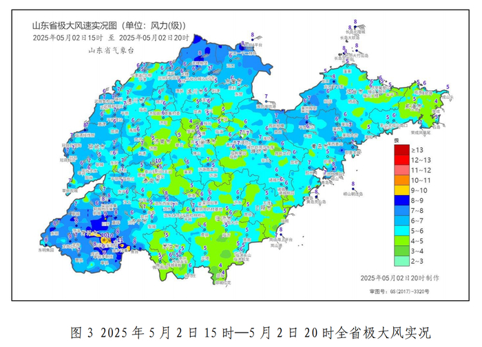 从风力情况来看,今天15时至20时,山东省出现分散性强对流天气,伴有7~9级局部10~11级的雷雨大风(最大出现在济宁金乡淳集站31.2米/秒,11级),菏泽巨野、牡丹、定陶,济宁嘉祥、金乡、鱼台、微山和枣庄滕州出现小冰雹。