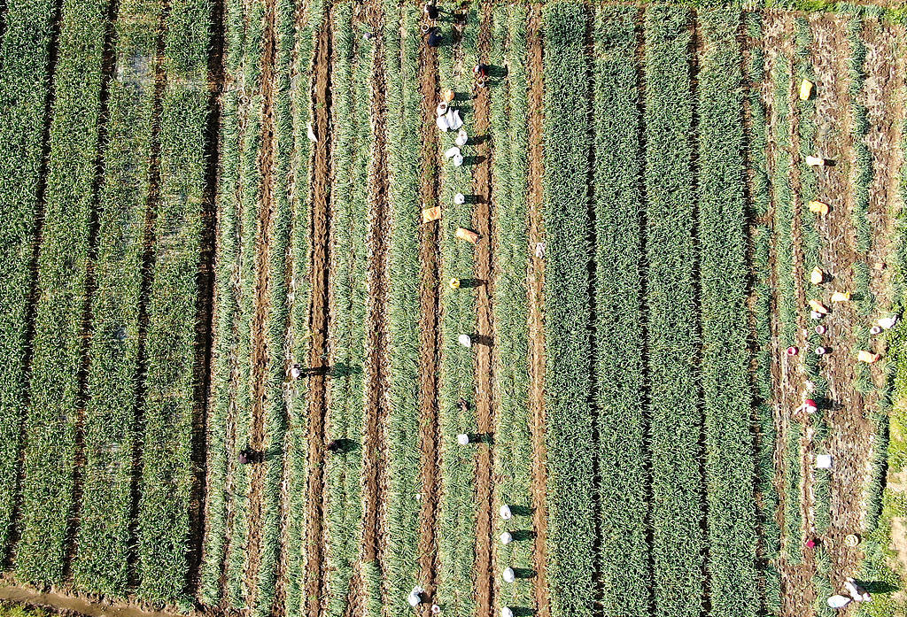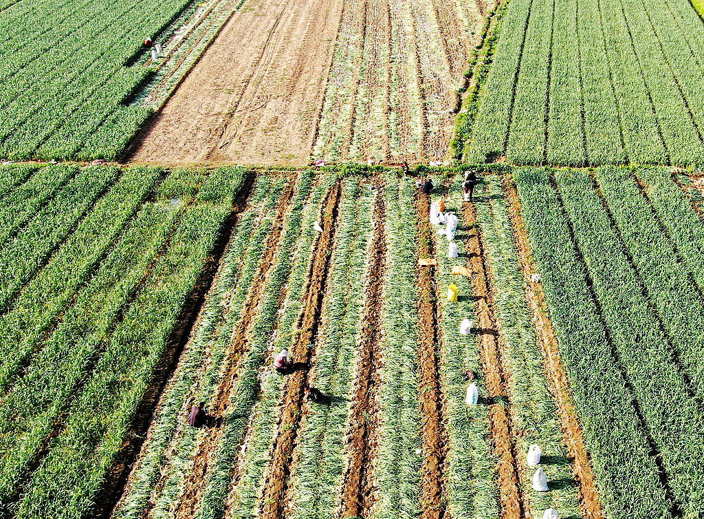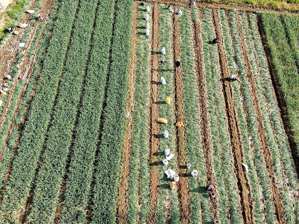 眼下,临沂市平邑县大蒜迎来收获季,当地农民抢抓农时收获大蒜,田间地头一派忙碌景象。