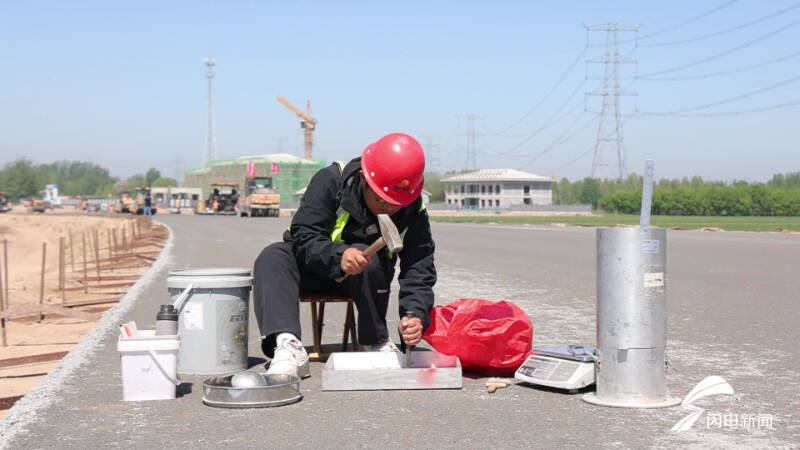 为了确认水稳层的质量安全,工程人员在已完成摊铺的水稳层路面上,每隔500平方米设置一个测量点,并通过压实度检测来测试水稳层质量是否合格。
