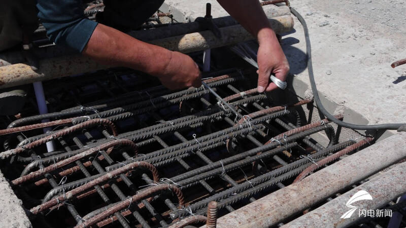 “现在施工的是桥梁湿接缝钢筋绑扎工作,一天平均每个工人能干10米,咱这个钢筋是上下两层水平筋,需要给u型环形筋都绑一块,大概每人每天能绑800多个扣。”临武高速三分部工程科科员王希旺告诉记者。
