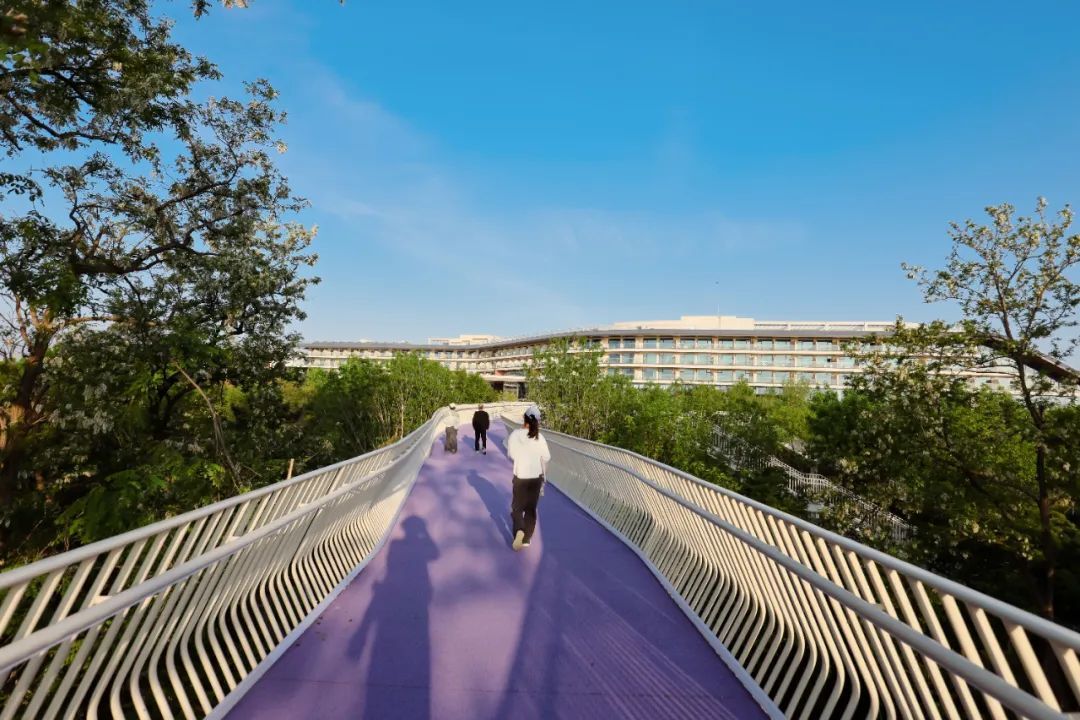脚下是平整而鲜艳的紫色步道