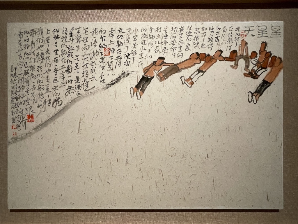澎湃新闻:我在现场观展也勾起我很多童年回忆,因为我们小时候也扎花灯,我看你的《星星天》,我就想到小时候跟小朋友躺在夏夜的草地上看满天的星星,特别好,就那么几笔,很简净,却勾起我很多回忆。