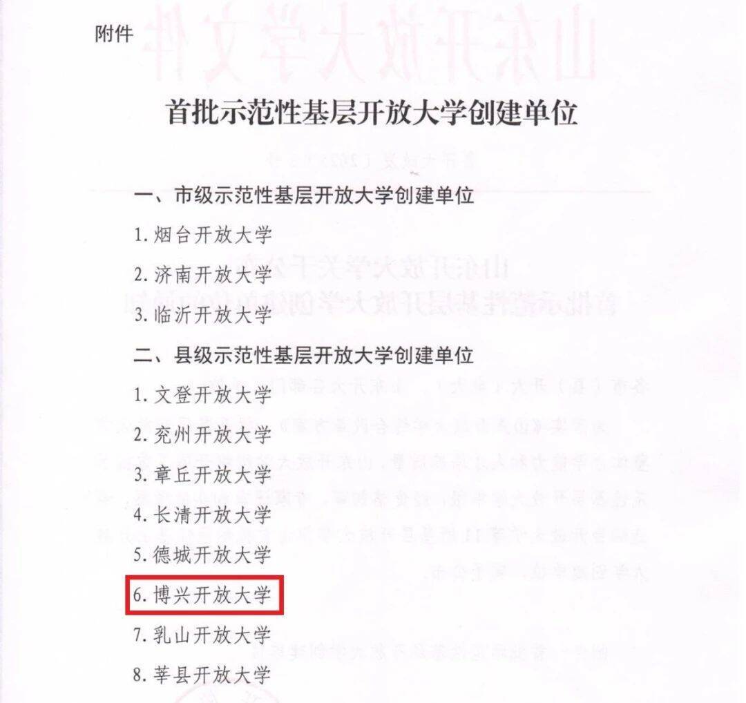 近日,滨州市博兴开放大学荣获首批山东省示范性县级开放大学,是全省首批八家示范性县级开放大学之一,获得50万元专项资金用于硬件设施建设。