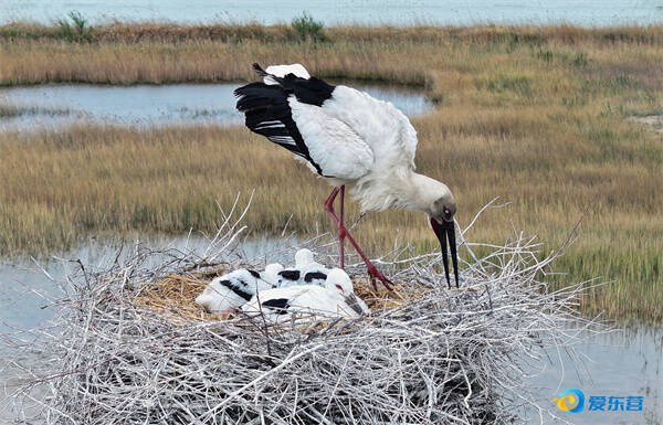 爱东营讯 5月6日,在黄河三角洲国家级自然保护区附近,一巢东方白鹳幼鸟正在亲鸟的精心喂养下茁壮成长,羽翼日渐丰满。目前,在黄河三角洲筑巢繁殖的东方白鹳已成功孵化出幼鸟,并进入了雏鸟喂养期。