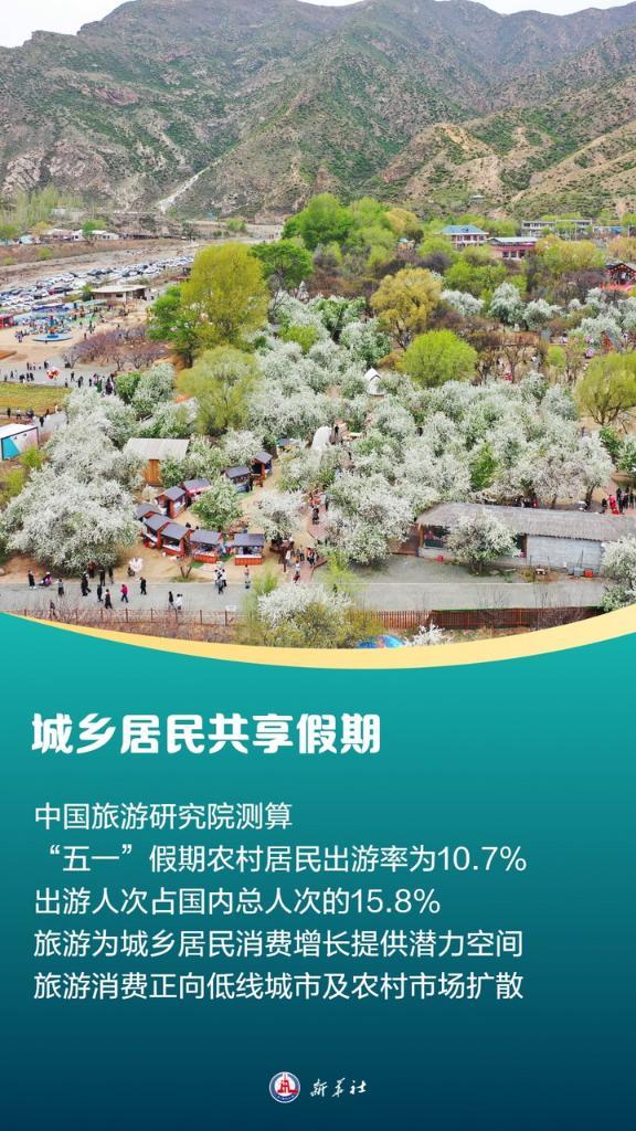 中国旅游研究院测算,“五一”假期,农村居民出游率为10.7%,出游4971.16万人次,占假日国内出游总人次的15.8%。这反映出,旅游已经成为城乡居民最有增长潜力的消费增长空间之一,旅游消费从高线城市向低线城市,从中心城镇向农村市场形成梯度扩散的趋势。