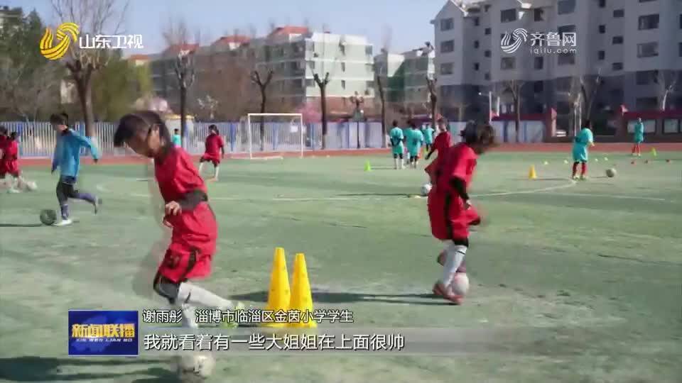在淄博市临淄区金茵小学,足球是学校的必修课。学生谢雨彤从一接触足球就爱上了这项运动。淄博市临淄区金茵小学学生谢雨彤说:“我就看着有一些大姐姐在上面很帅,我就想踢球。”