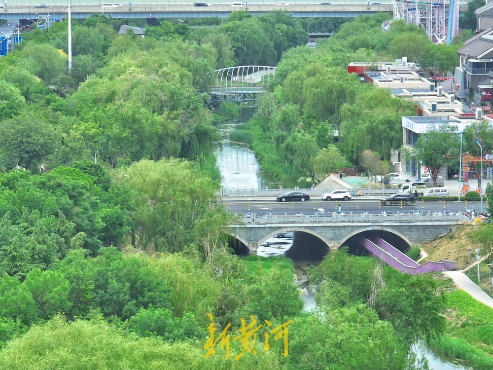 5月8日,初夏时节的济南腊山河河水充盈,河畔绿柳如烟,满目青翠。