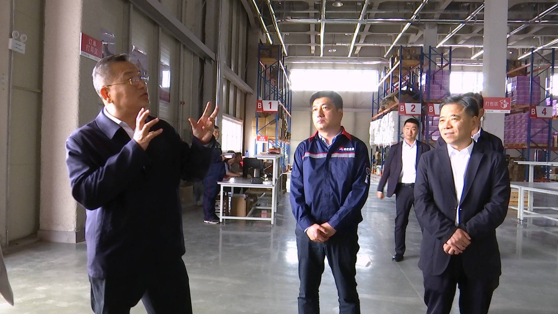 当天上午11点,督导组一行来到位于薛城的枣庄交投智慧仓储物流园。据枣庄市商务局党组成员副局长郭立波介绍,物流园集智能仓储、冷链物流等多功能于一体,共占地107亩,目前京东已经正式入驻,物流园还在建设中。郭立波表示:“物流园建好后,很多电商企业就可以把货放到这个地方,在自己平台上成交完以后,发货的事就不要管了,这个地方可以一键代发,发到全国各地去,价格可以比原来下降两毛钱左右。”
