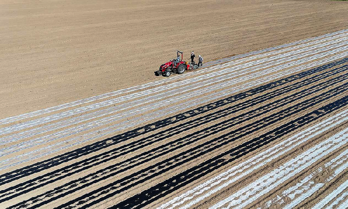近日,滨城区杨柳雪镇农民驾驶装有北斗导航系统的覆膜机为棉花覆膜。 初夏时节,在杨柳雪镇广袤的田野上,装配北斗导航的现代化农机有序穿梭,进行棉花播种、覆膜等作业。近年来,滨州市强化北斗导航技术在农业领域的深度应用,加快农业生产向智慧化、数字化、精准化转变,以科技创新驱动现代农业转型升级。