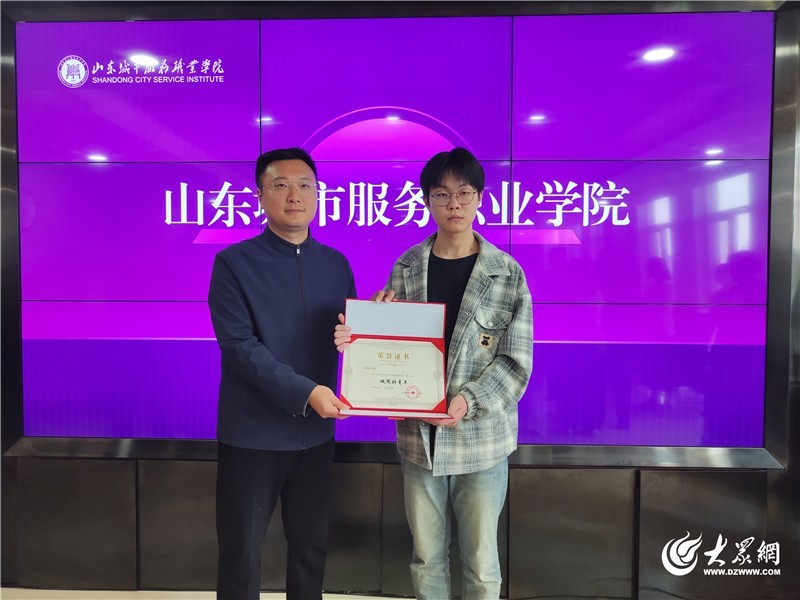 山东城市服务职业学院为见义勇为的学生姜绍鹏颁发荣誉证书