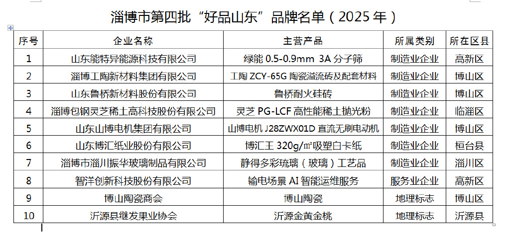 记者梳理名单发现,山东能特异能源科技有限公司、智洋创新科技股份有限公司、博山陶瓷商会、沂源县继发果业协会等全市行业领域内知名企业的品牌产品均位列其中。至此,淄博市在“好品山东”品牌榜上的数字已经扩大到41个。