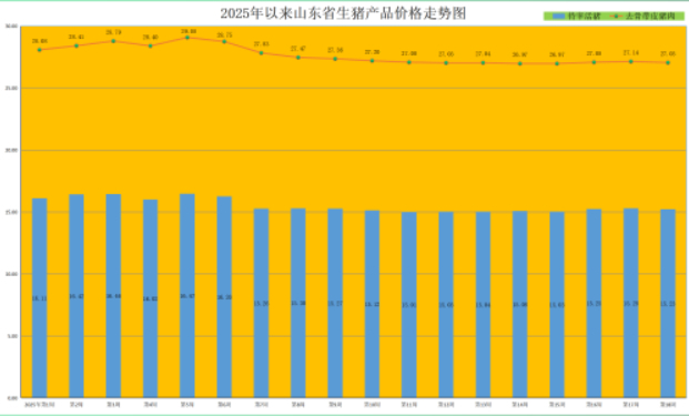 生猪价格承压回落,猪肉价格弱势走低。新黄河记者5月18日从山东省畜牧总站获悉,本周猪肉均价为26.90元/公斤,同比升高1.78%,环比回落0.55%。当前,生猪养殖趋于盈亏平衡,自繁自养头均利润约15元/头,外购仔猪略有亏损。牛羊肉方面,本周牛肉均价为62.44元/公斤,同比升高1.10%,环比升高0.55%;羊肉均价73.20元/公斤,同比降低0.38%,环比升高0.12%。