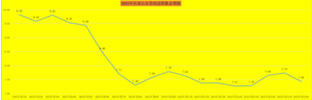 就全省监测的26个价格县来看,本周全省最高价在阳信县,为8.38元/公斤;最低价出现在郓城县,为6.20元/公斤。蛋价回落,蛋鸡养殖效益走低。据监测本周蛋料比为2.47:1,环比降低2.09%,当前全省蛋鸡养殖的完全成本约为7.4元/公斤左右,当前蛋价已跌至综合成本线之下,陷入亏损。