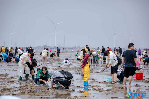 “五一”小长假,黄河口东海岸金泥湾现代渔业综合区的沿海滩涂上人流如潮,热闹非凡,众多市民游客来这里赶海挖蛤蜊,体验黄金海岸“赶海拾贝寻宝”的乐趣。