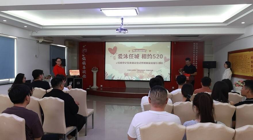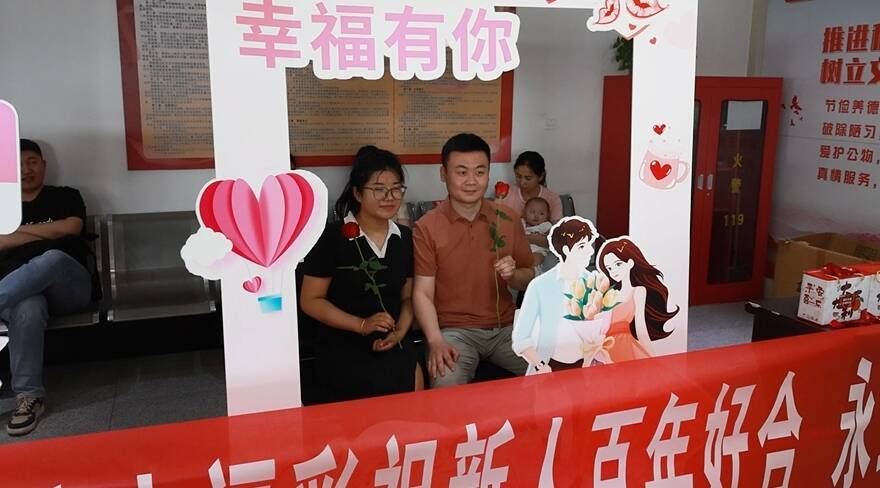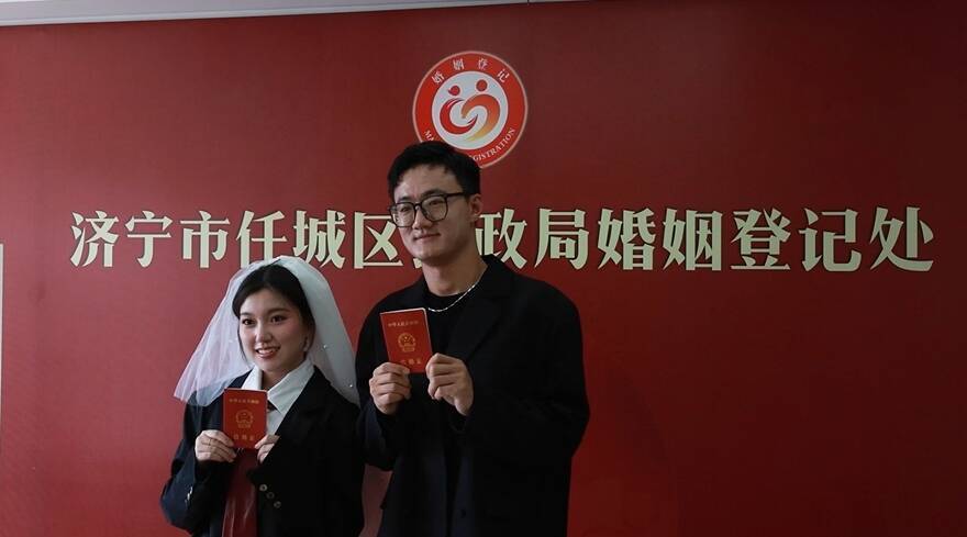 “为应对本轮登记热潮,婚姻登记处全员上岗、增设办理窗口、延长办理时间,以确保当天申请当天办结。同时,为满足新人拍照打卡的要求,我们在办公场所营造了温馨、浪漫、喜庆的氛围,联合济宁市福彩中心和济宁市心桥社会工作服务中心等爱心单位开展集体颁证仪式、婚前辅导等特色活动,为新人营造仪式感。”济宁市任城区民政局婚姻登记处工作人员唐恒固告诉记者。