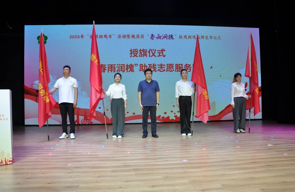 活动中,与会领导共同点亮启动装置,标志着“春雨润槐”助残服务品牌正式发布。“春风化雨,国槐泽荫”,旨在通过精准化、专业化、社会化的服务模式,为残疾人提供全方位、全生命周期的服务支持。品牌下设“百千”助残志愿服务队、“星光满槐”助残志愿服务队、“一专两员帮你办”助残志愿服务队、“就跟我来”就业创业助残志愿服务队等多个志愿助残服务子品牌,涵盖残疾人志愿帮扶,就业培训、康复训练等多个服务项目。