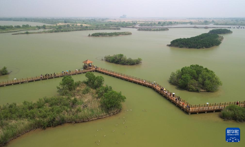 初夏时节,位于山东省东营市的黄河三角洲国家级自然保护区绿意盎然、生机勃勃。近年来,保护区累计退耕还湿、退养还滩7.25万亩,湿地面积增加188平方公里。截至今年4月份,保护区内共拥有种子植物685种,野生动物1633种。 (来源:新华社)