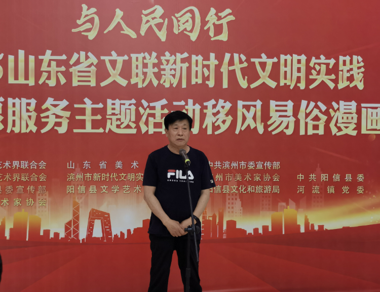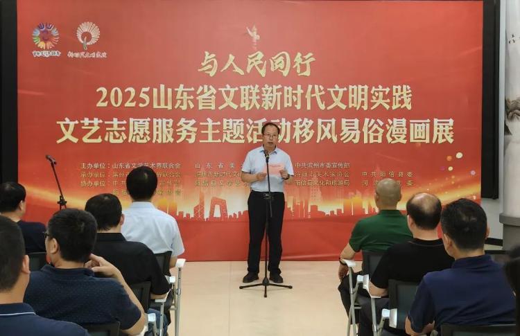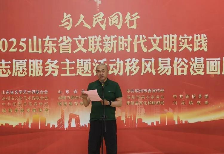 5月21日,与人民同行·2025山东省文联(滨州市)新时代文明实践文艺志愿服务主题活动暨山东省移风易俗漫画展在阳信县启动。
