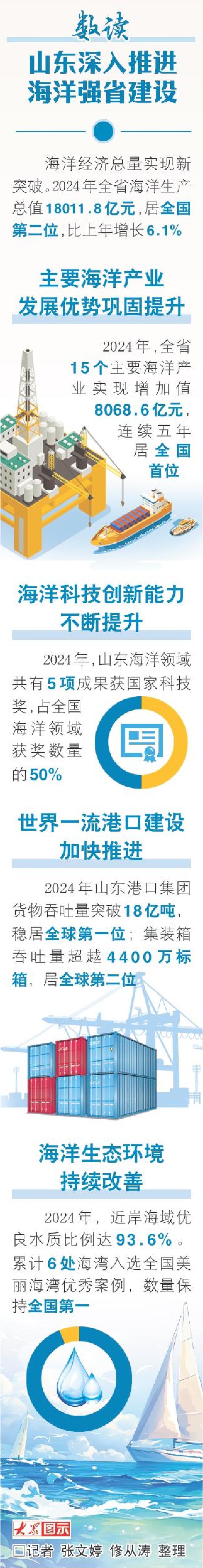 “真金白银”的投入换来海洋科技创新成果涌现。2024年山东海洋领域共有5项成果获国家科技奖,占全国海洋领域获奖数量的50%,海洋科技优势正转化为经略海洋的山东实践。