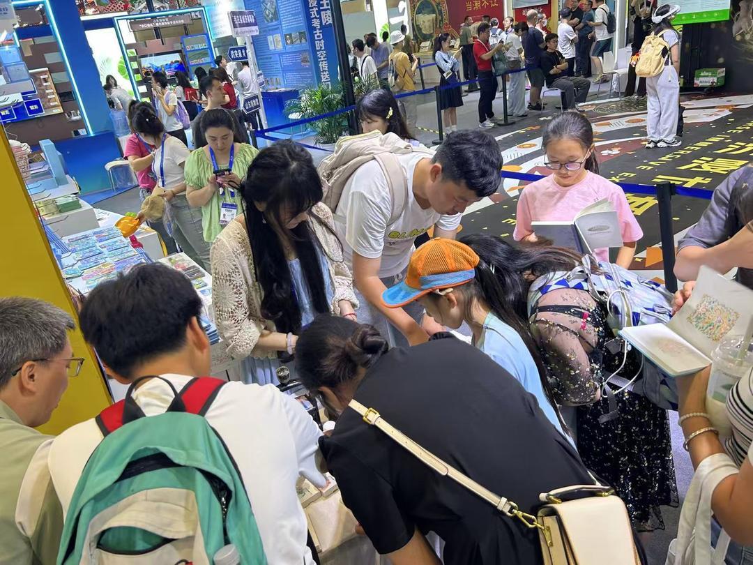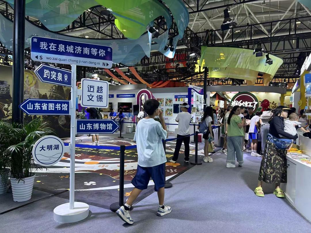 山东展区是文创爱好者的“天堂”。在展区收集文创产品、等待“盖章”的观众络绎不绝。