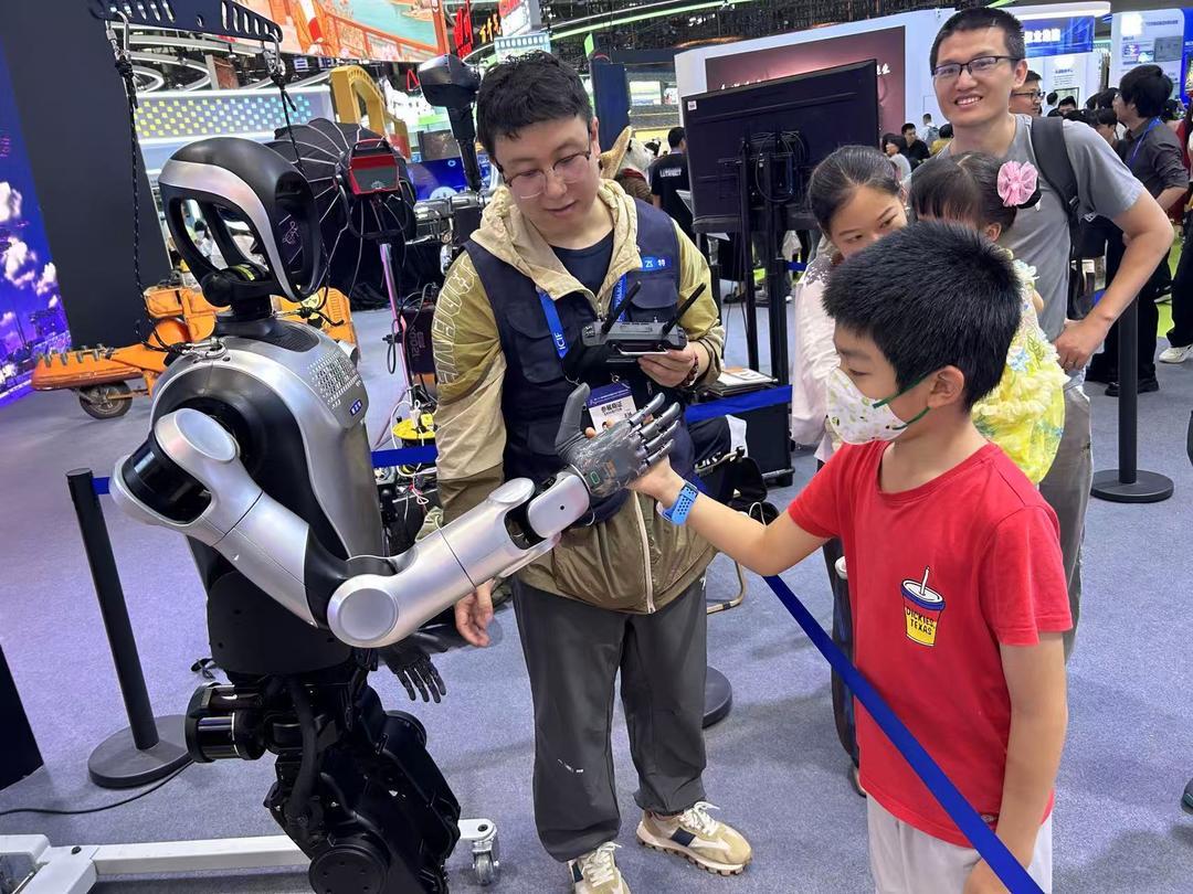 深圳小朋友和塞特特机器人握手“掰手腕”,比比谁的力气大?