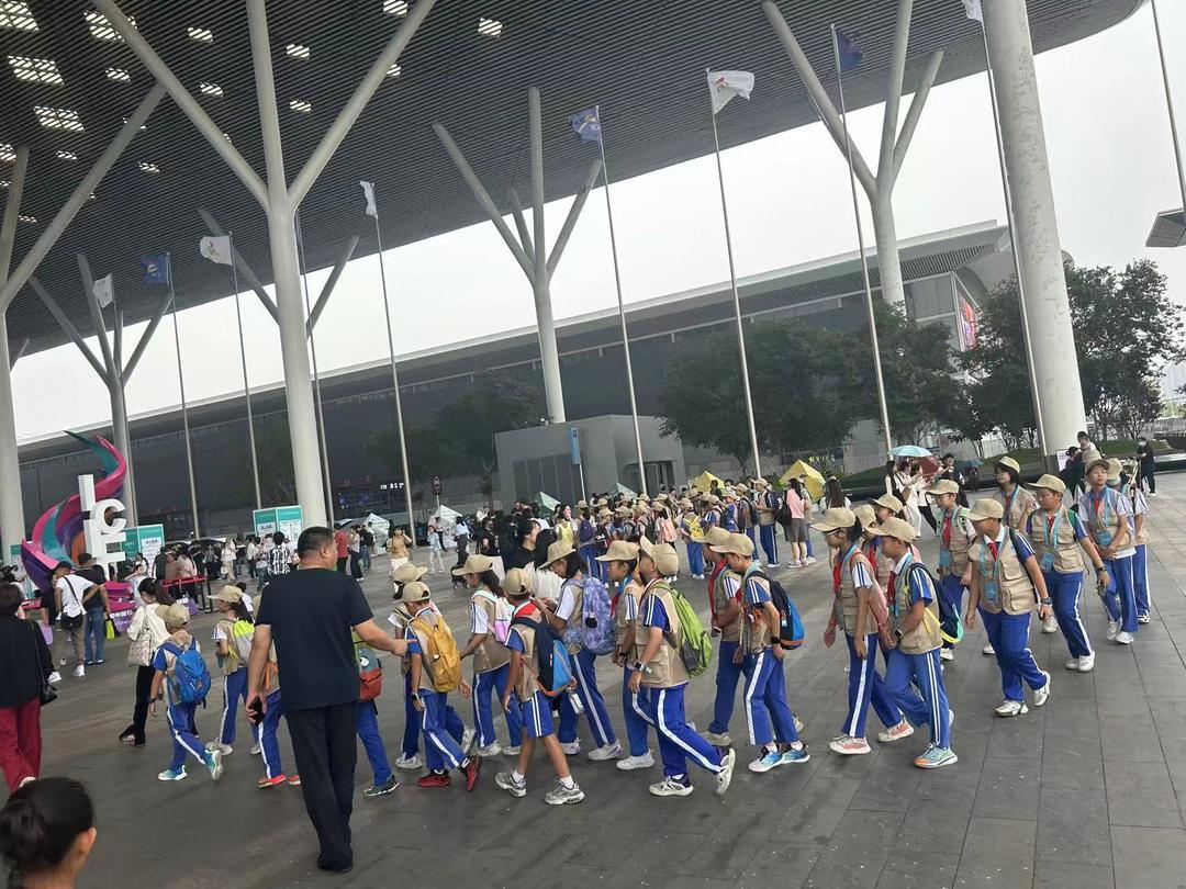 恰逢周六,深圳当地中小学纷纷组织孩子们到深圳国际会展中心“研学一日游”。