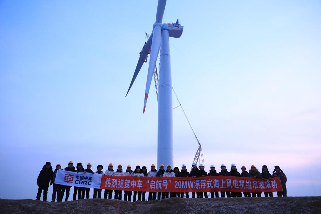 全球最大功率等级漂浮式风电机组“中车20MW启航号”在东营风电装备测试认证创新基地完成吊装。