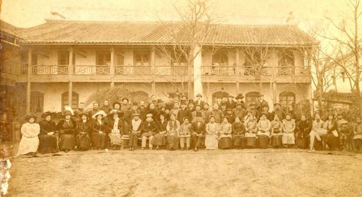 (图8)1912年8月,孙中山与烟台各界人士在北饭店前合影