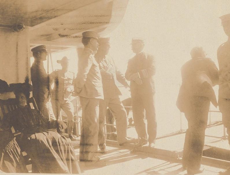访华团一路由塔夫脱率领,先后访问广州、上海。因为这两个城市是抵制美货主要策源地。塔夫脱实地走访了一些美国洋行,了解情况。还与当地的官员、商会领袖进行了会谈;一路由爱丽丝· 罗斯福率领,从香港乘船,途径烟台直赴北京。爱丽丝一行在经过烟台时,受到了在此避暑度假的美国亚洲舰队司令特雷恩(Train)将军的接待(见图4)。