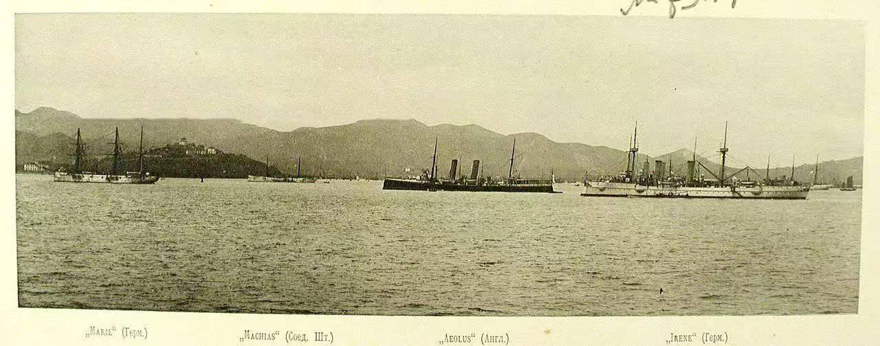 (图2)1895年5月,英、德、美军舰在烟台海面巡弋