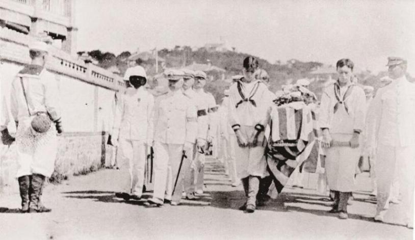 (图7)1906年8月4日,美军在海滨饭店前为特雷恩举行葬礼